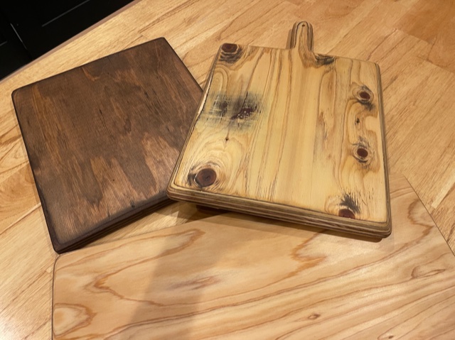 ツルッツルになったものに柿渋塗料塗ったり塗らなかったりをした後にアマニオイルでオイルフィニッシュ仕上げをしております。