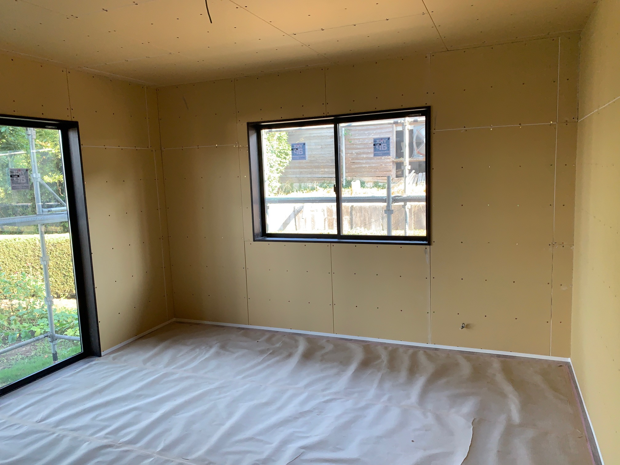 足場のシートをたたんで来ました。